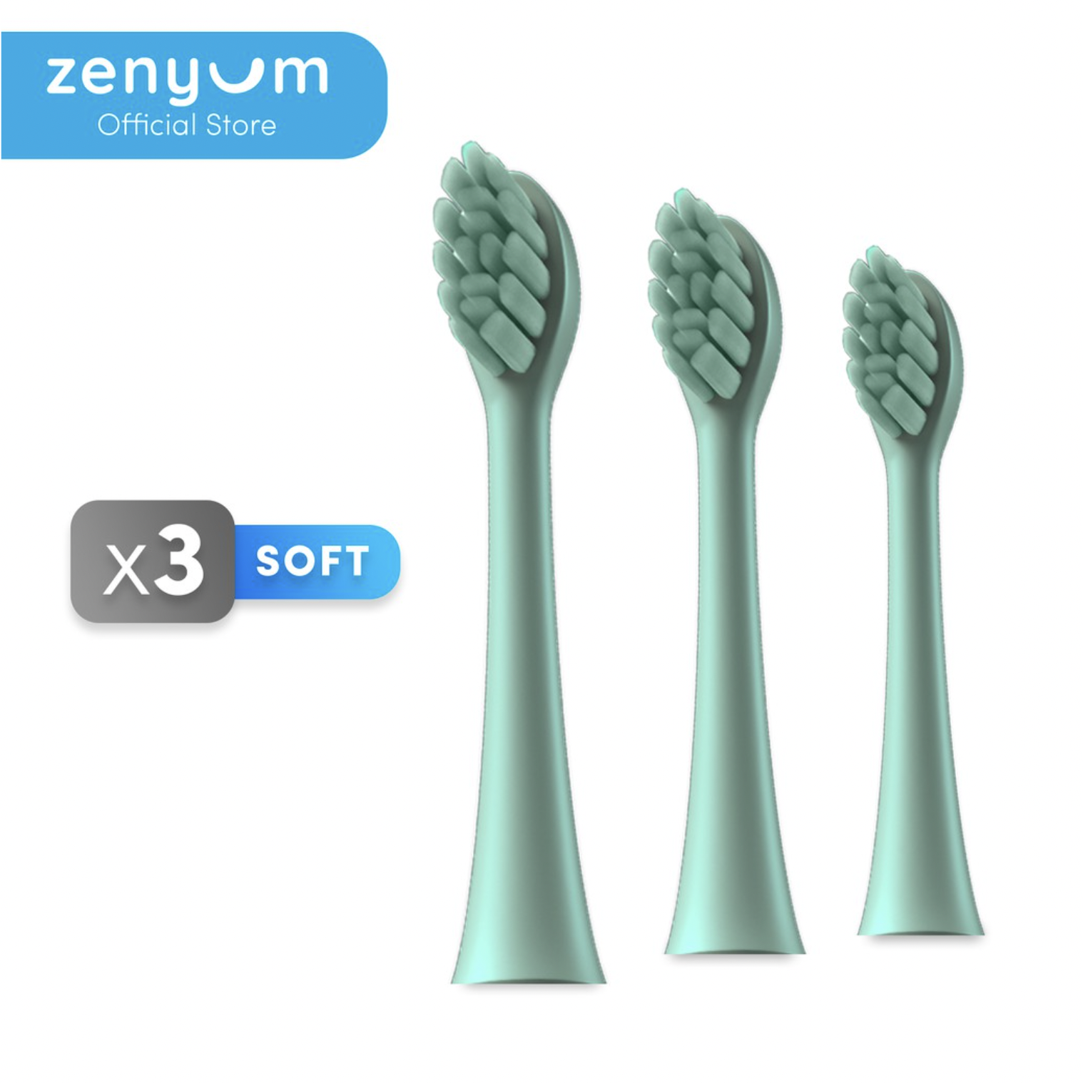ZenyumSonic 3-Pack Replacement Brush Heads Refills- Matte Black/White/Pink/Green/Blue for Electric Toothbrush (Sonic Vibrations/ 3 Modes: Whitening, Gentle & Deep Cleaning/ Good for Braces & Teeth/ So