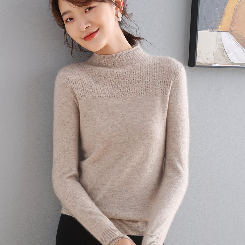 2021 Autumn and Winter New Half Collar Cashmere Sweater Women's 100 Pure Cashmere Genuine Thin Bottoming Sweater Solid Color