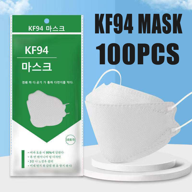 【Snikelion】100Pcs KF94 Reusable Original Washable KF94 facemask KF94 For Adult Face Mask Non-woven Disposable 100 pcs Filter Unisex White Black color Single Facial Kf94 korean mask Kf94 korean mask Kf