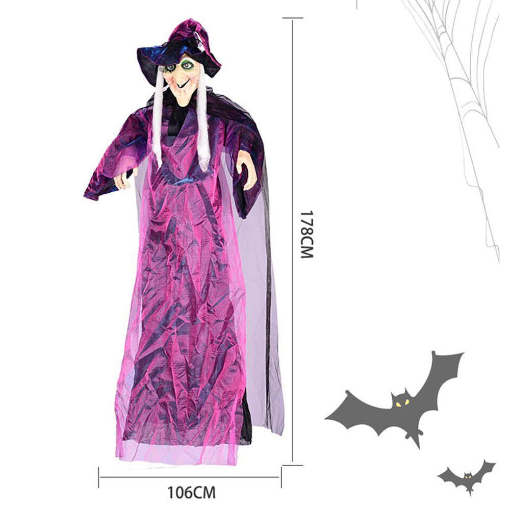 1. Large-size Halloween props: 70 in/178cm witch is an ideal Halloween decoration, which can add a creepy, weird and horrible atmosphere to your Halloween parties, events, horror entertainment, haunted houses and other themed occasions.