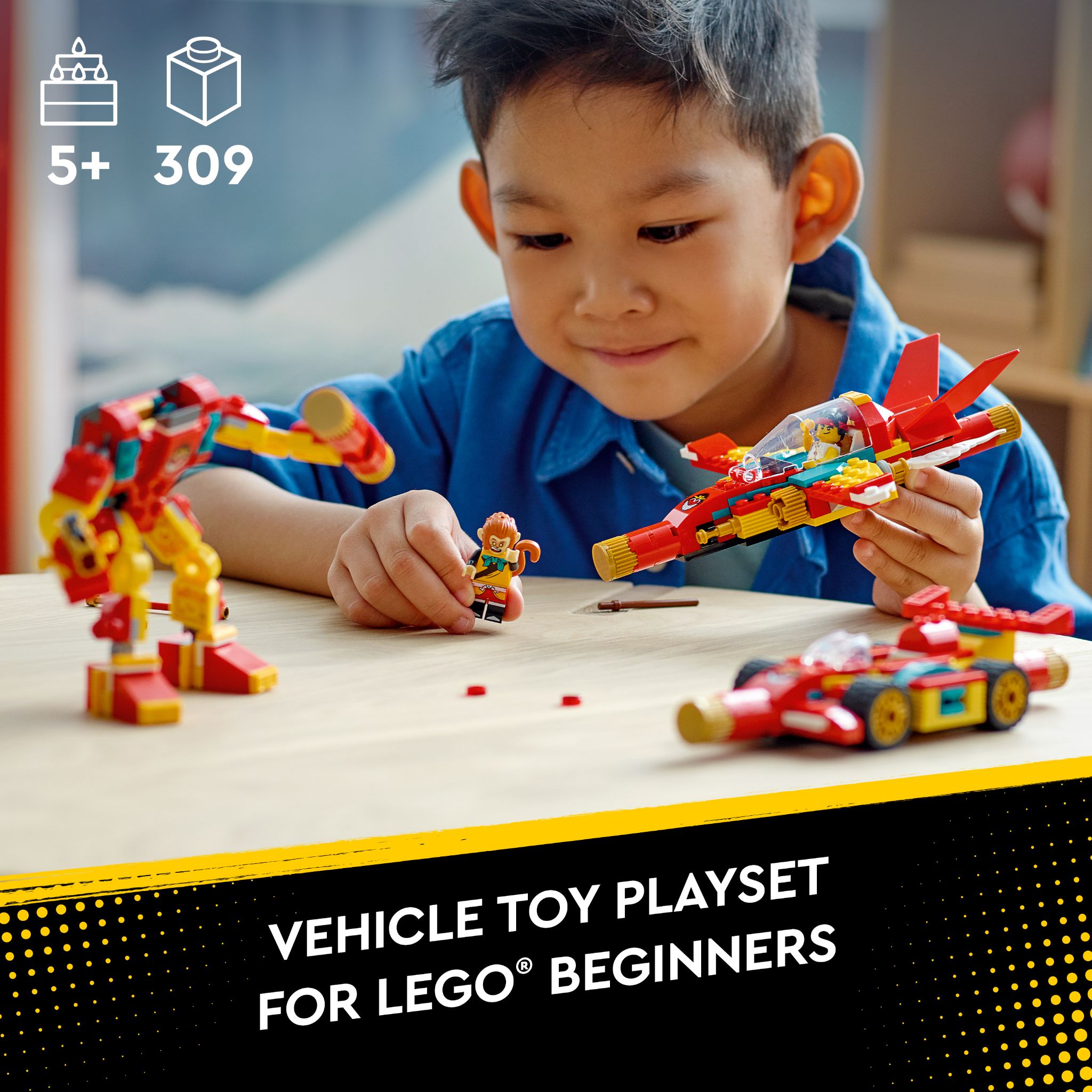 Build creative confidence – Youngsters can build a mech, race car and airplane and their own versions of Monkie Kid’s Staff Creations with this fun modular toy playset (80030)