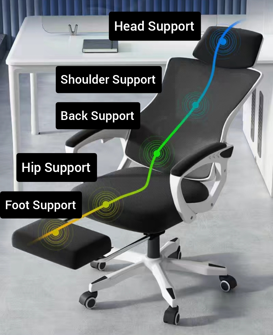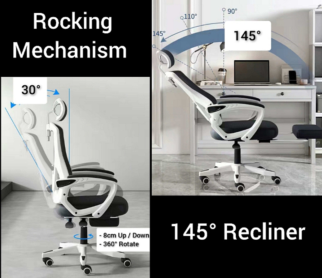 SG Delivery in 1-3 working days - (Free Installation) High Back Ergonomic Mesh Chair Retractable Footrest 3D Adjustable Headrest SGS Certified lumbar hip support swivel rotatable study office computer