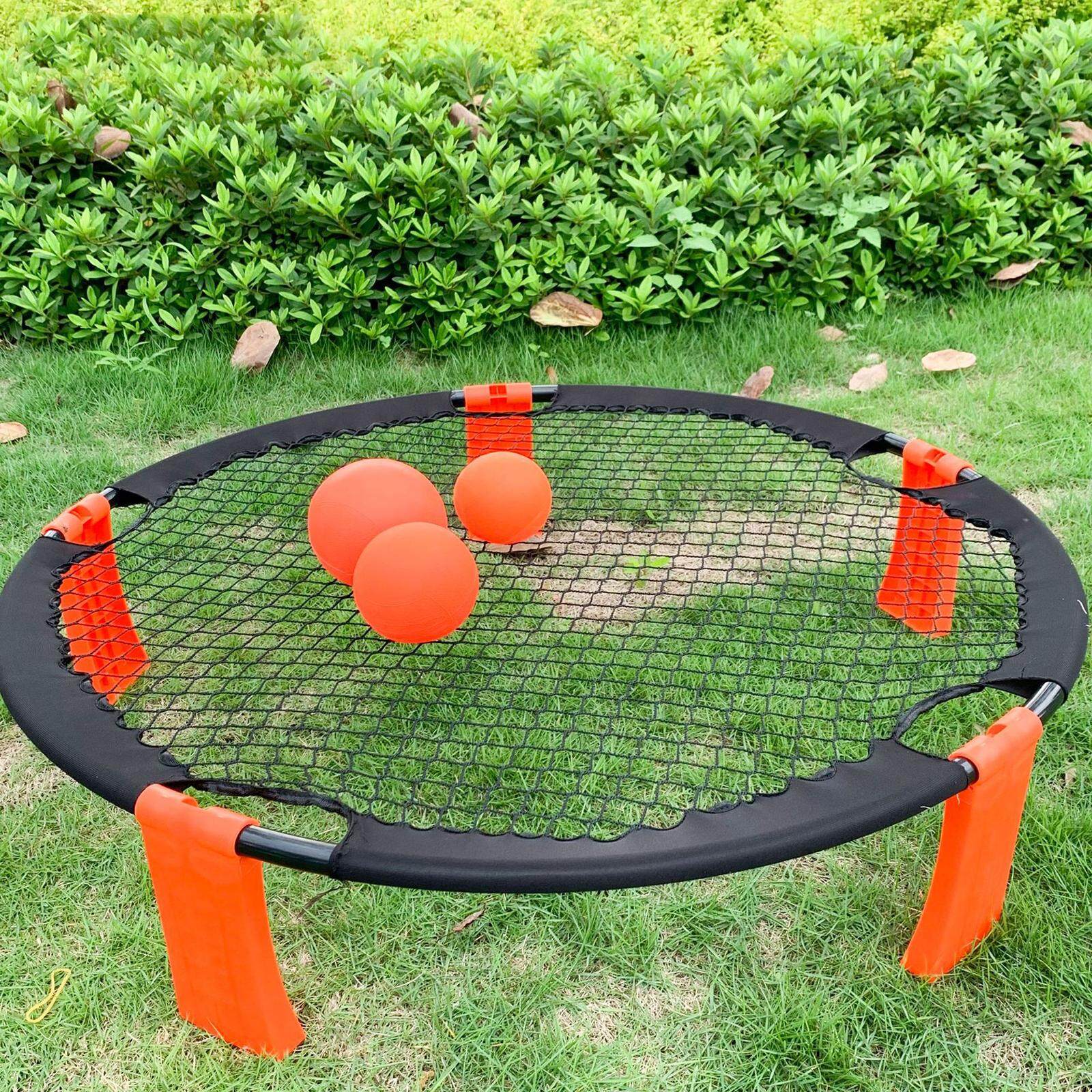 - Spike Game Set: Includes 1 x round net, 3x balls, 1x carrying case, and 1x inflating pump. An exciting outdoor lawn game for kids, teens, and adults!
