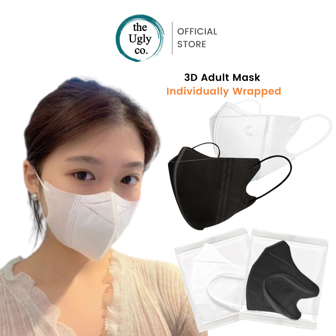 KN95 Individual Pack Adult Mask 3ply 3D - 30/100pcs Disposable Face Masks Black and White, Local SG stock, antibacterial, no fog, individually packed, breathable, cheap mask non surgical medical BFE 9