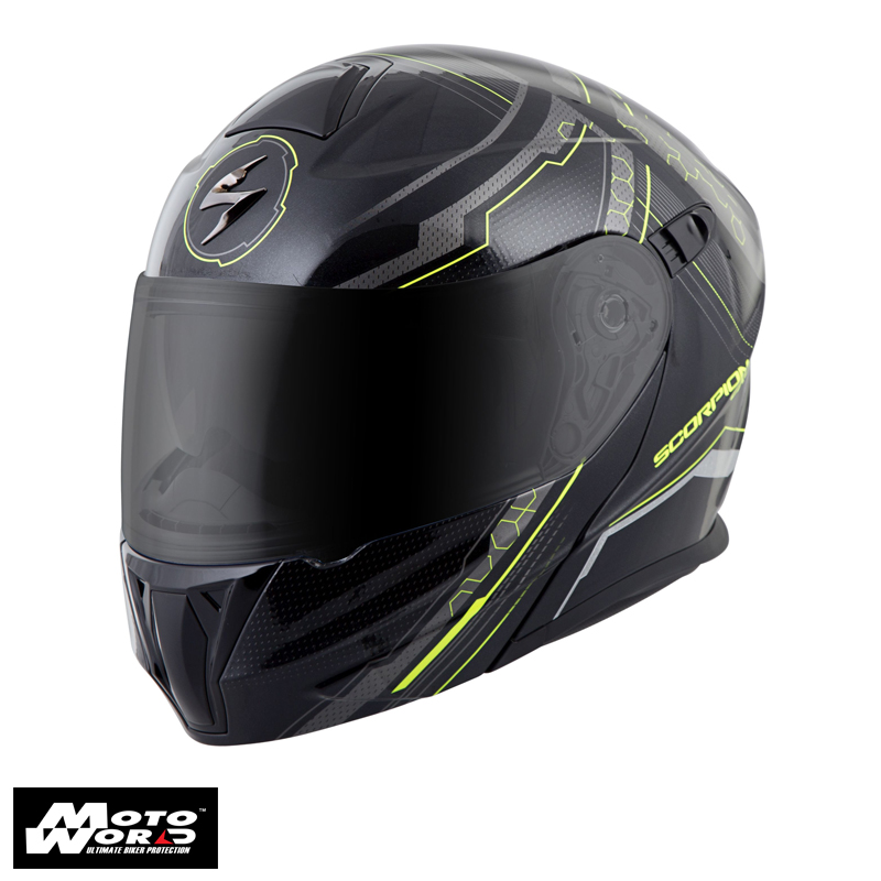 Scorpion EXO-92-211-174 Satellite Modular Motorcycle Helmet Matal Black-Neon Yellow