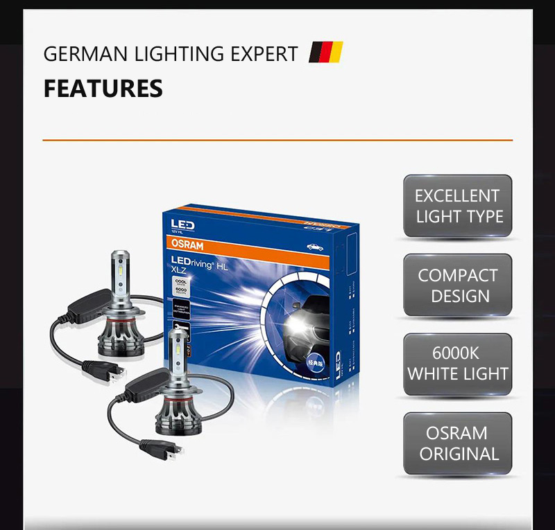 OSRAM NEW XLZ LED H1 H4 H7 H8 H11 H16 HB3 HB4 HIR2 6000K Car Auto Headlight Quick Start Germany LEDrving
