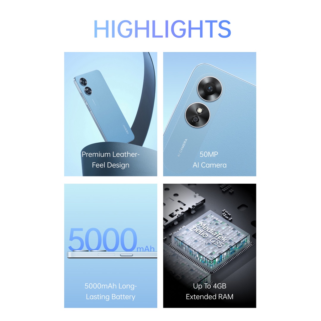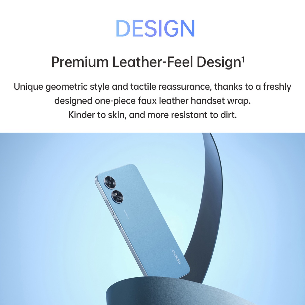 Adopting the ultra-slim body and Premium Leather-Feel design, the new OPPO A17 gives off a one-of-a-kind visual