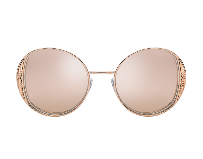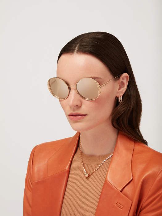 B.ZERO1 SUNGLASSES WITH ROUND METAL FRAME AND PINK GOLD-PLATED LENSES. GOLD-TONE METAL STUDS, INSPIRED BY THE ICONIC B.ZERO1 ROCK COLLECTION, COMPLEMENT THE LIGHTWEIGHT STRUCTURE FOR A UNIQUE STATEMENT.