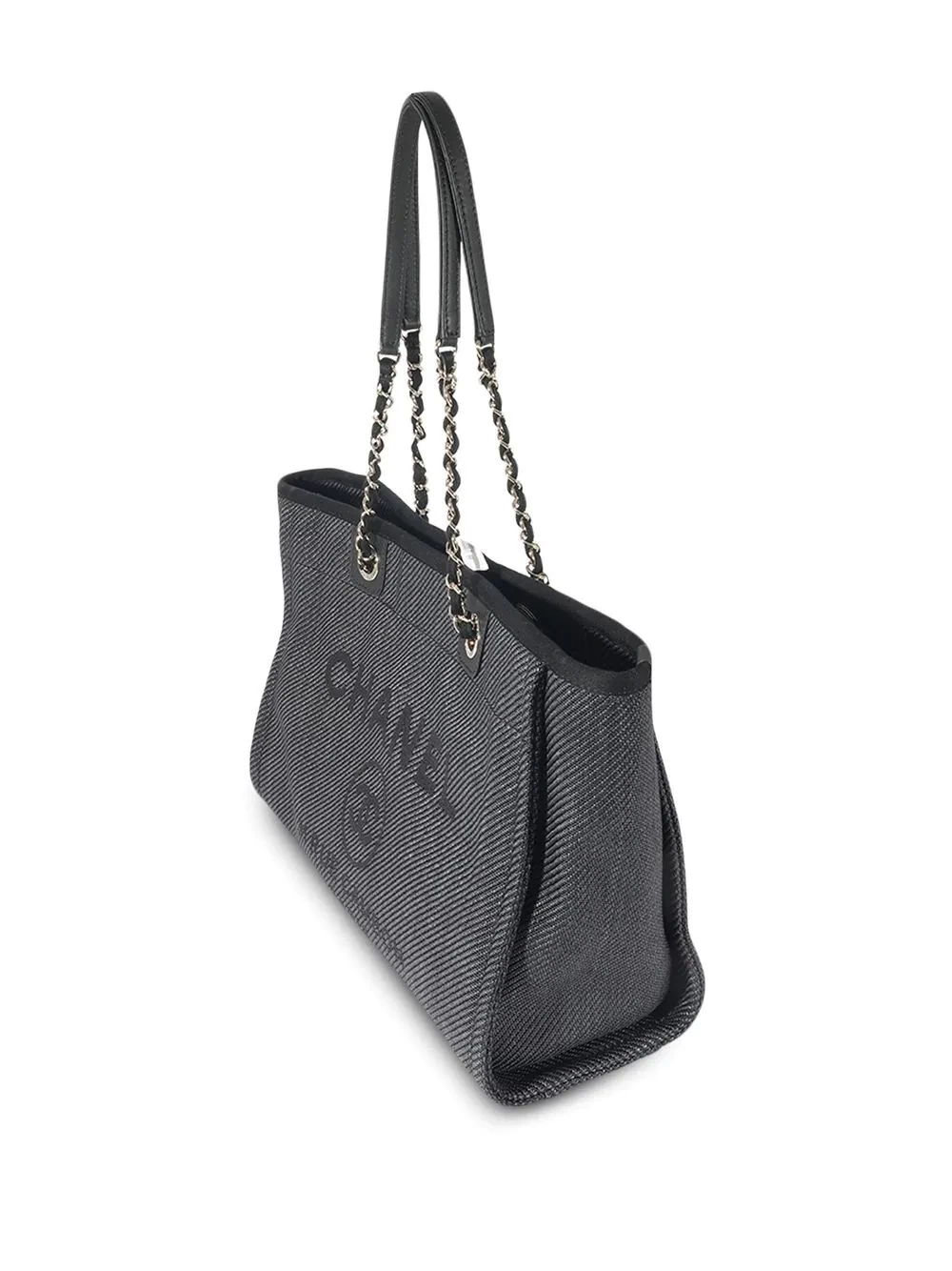 Canvas and leather, iconic buckle CC logo, front embroidered with logo embroidery, two leather chain straps, magnetic buckle, main mezzanine, built-in zipper pocket, built-in logo decal, gold hardware accessories.