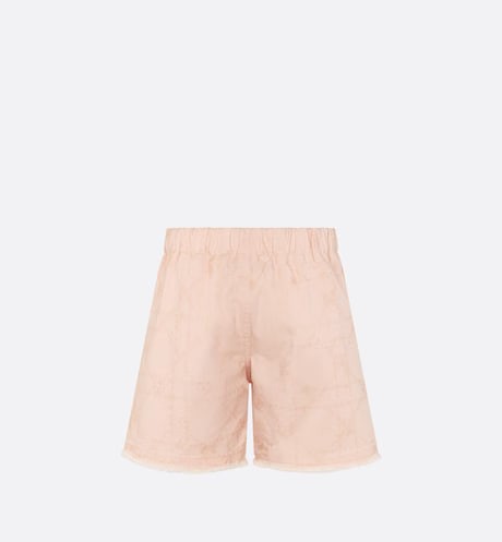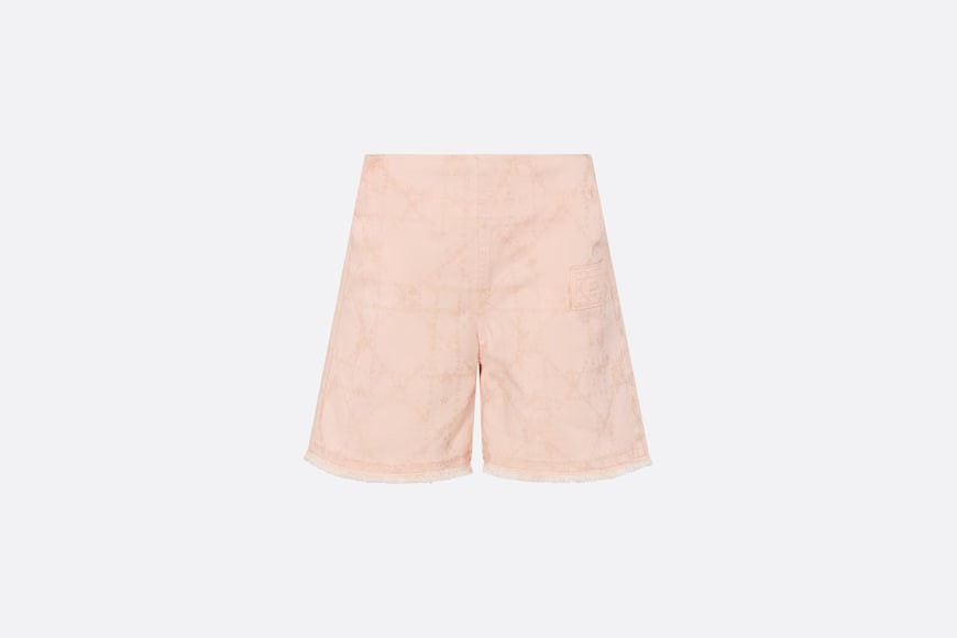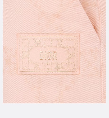 It is made of peach cotton oblique waterproof cloth with full print, marked with Cannage rattan case, and light gold Dior thorn at the bottom of the left pocket.