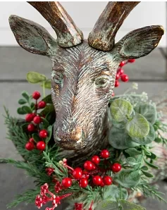 Bring woodland enchantment into your home by setting these regal deer beside your tree, along entryways, or on the porch. Add the removable foliage for instant color and charm to your holiday display.