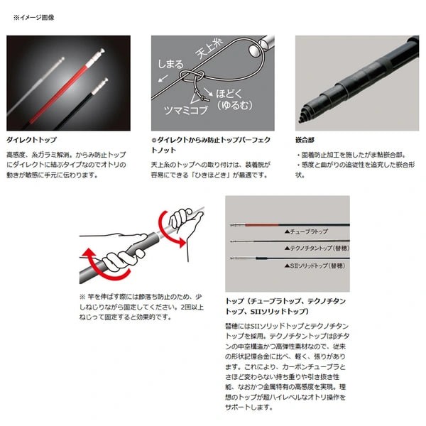 Subdivide the condition according to the situation. High potential rod. The concept of the 7th generation competition special is "actual battle". As the name "competition" suggests, the required performance has been evolved for each condition in the game held on any river. We analyzed the roles of the parts in the series of actions of sweetfish fishing, and optimized each serial number so that it can be done without stress. It also has an extra sensor that creates sensitivity and a stabilizer system that prevents twisting and enhances control performance. The replacement head is equipped with an ultra-sensitive techno titanium top and SII solid top as standard equipment.