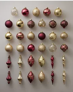 • Burgundy & Gold Main Ornaments, Set of 35