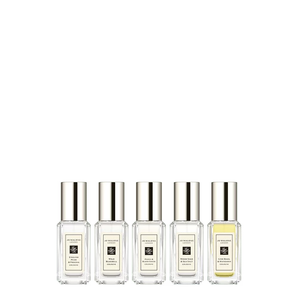 Five quintessential Jo Malone London fragrances in 9ml bottles.