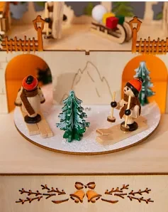 Let the charm of warm memories and wintry scenes fill your holidays. Experience the enchantment of moving gondolas and gliding skiers to delight all the little adventure-seekers.