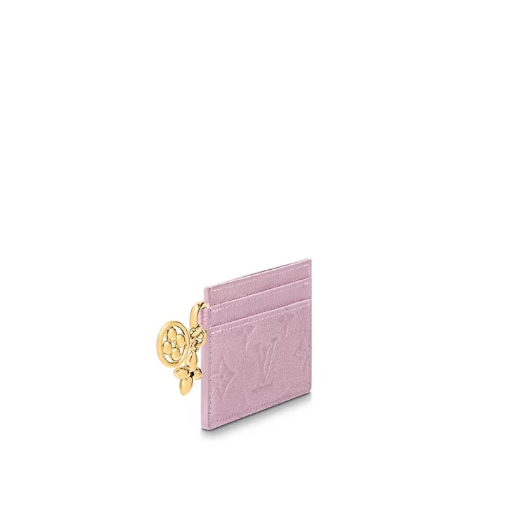 This special Mother's Day edition of the LV Charms Card Holder makes a perfect gift. It comes in grained Monogram Empreinte leather with a shimmering, pearly finish and is embellished with two Monogram Flower charms. It offers five slots for credit, travel or business cards: two slots on each side and a larger one in the middle.