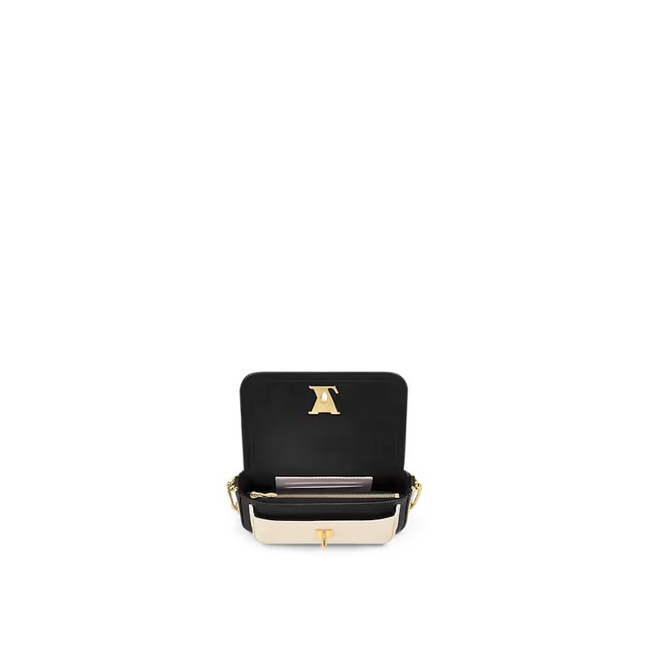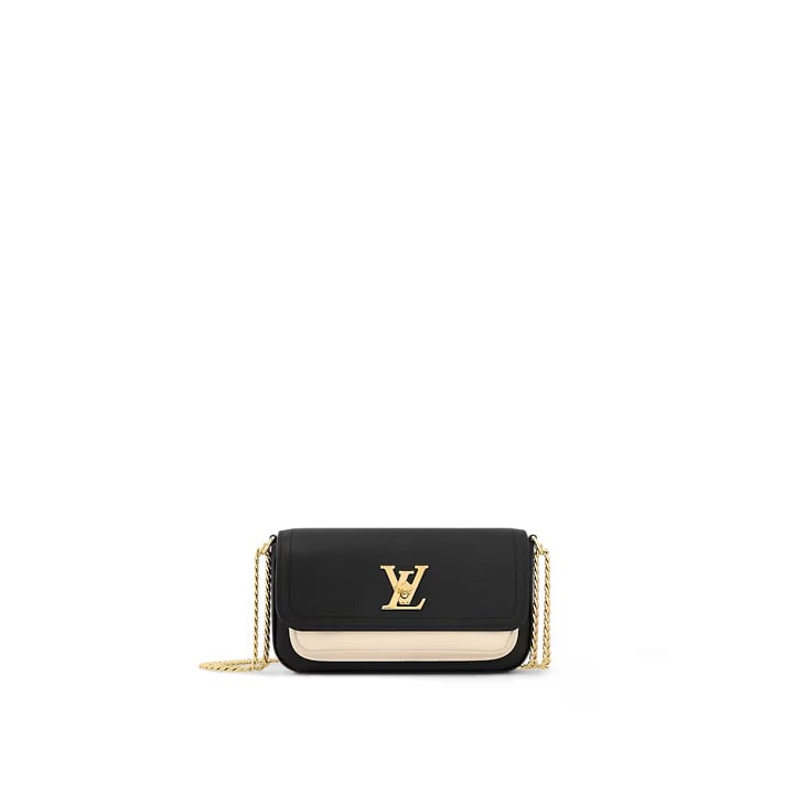The Lockme Tender Pochette is crafted from grained calf leather. Inspired by the Lockme Tender bag, it is notable for its rounded flap and contrasting front pocket, which can hold a smartphone. Refined gold-tone hardware completes this modern, day-to-evening style: the signature LV turn-lock of the Lockme line and a sliding chain for shoulder or cross-body carry.