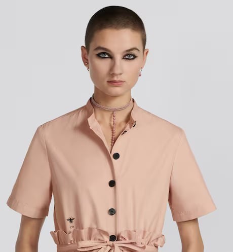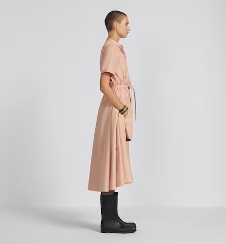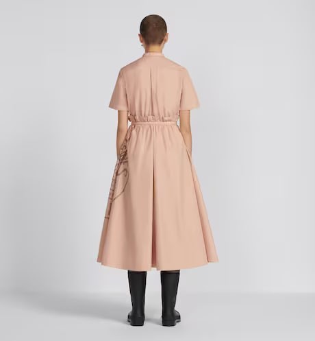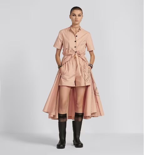 The face of this open-ended dress is based on the theme of L'Union Fait la Force, designed to design linen handbags from the workshop, and echoes the spirit of cooperation that Maria Grazia Chiuri attaches great importance to. It is made of pink cotton and mansion, designed with pleats, and the waistlines and pleats of the protruding waist make the cutting of the horn more elegant. This skirt can be built into the short style of this season, creating an elegant and modern charm.