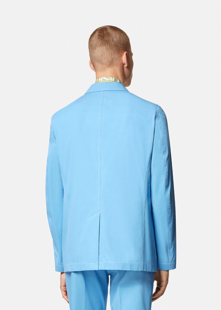 Slim fit blazer in lightweight cotton featuring a Medusa Biggie badge on the breast pocket. Jacket style featuring contrast stitching and multifunctional front patch pockets and side pockets.
