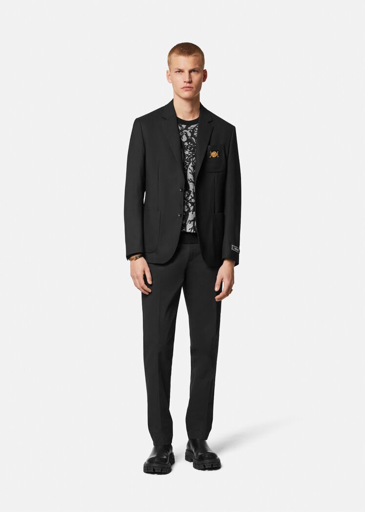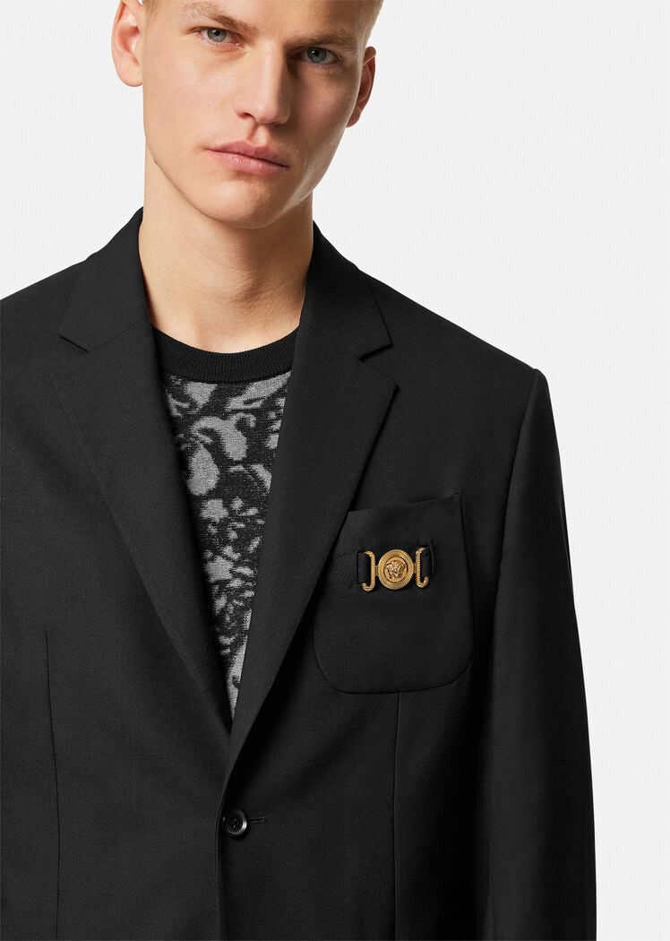 Single-breasted wool blazer with Medusa Biggie hardware on the breast pocket. Slim fit, half-lined, with Versace label on the cuffs.