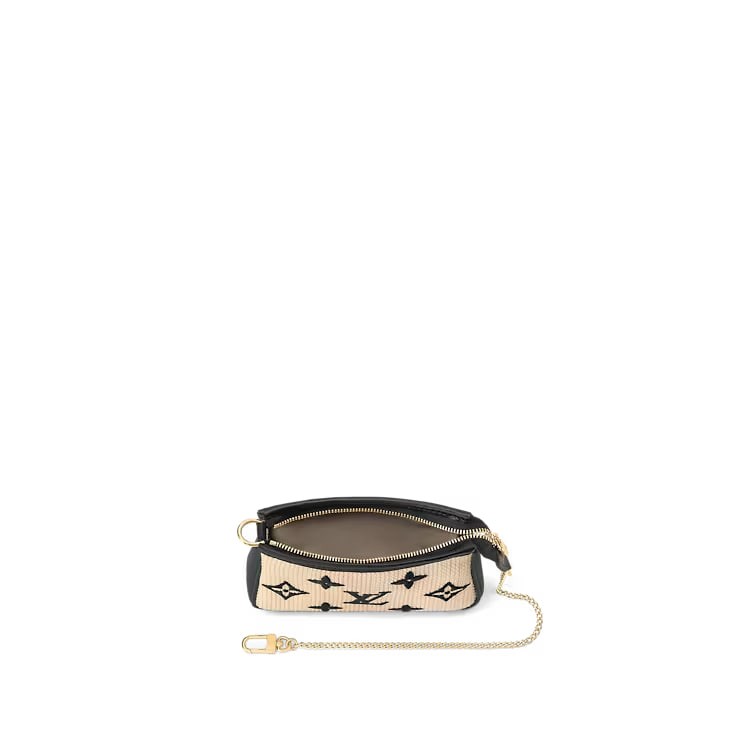 This refined edition of the Mini Pochette Accessoires comes in natural cotton with a black Monogram pattern and matching leather trim. Ideal for carrying small essentials, this diminutive pouch has a secure zip closure and a gold-tone hook and chain, which allow it to be attached to a bag or belt.