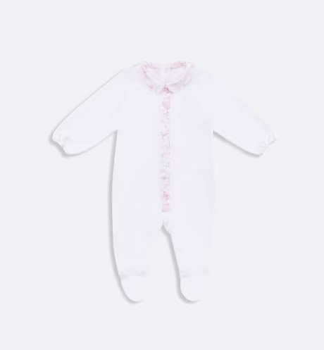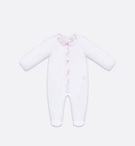 Made of white cotton, this suit includes pajamas, hats and mouths, and is pierced with Dior Oblique.