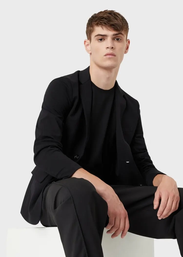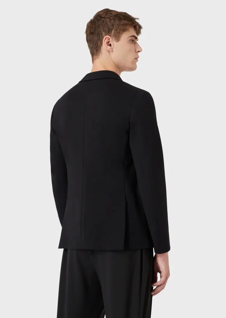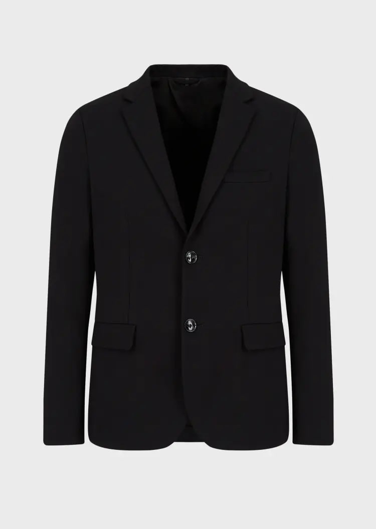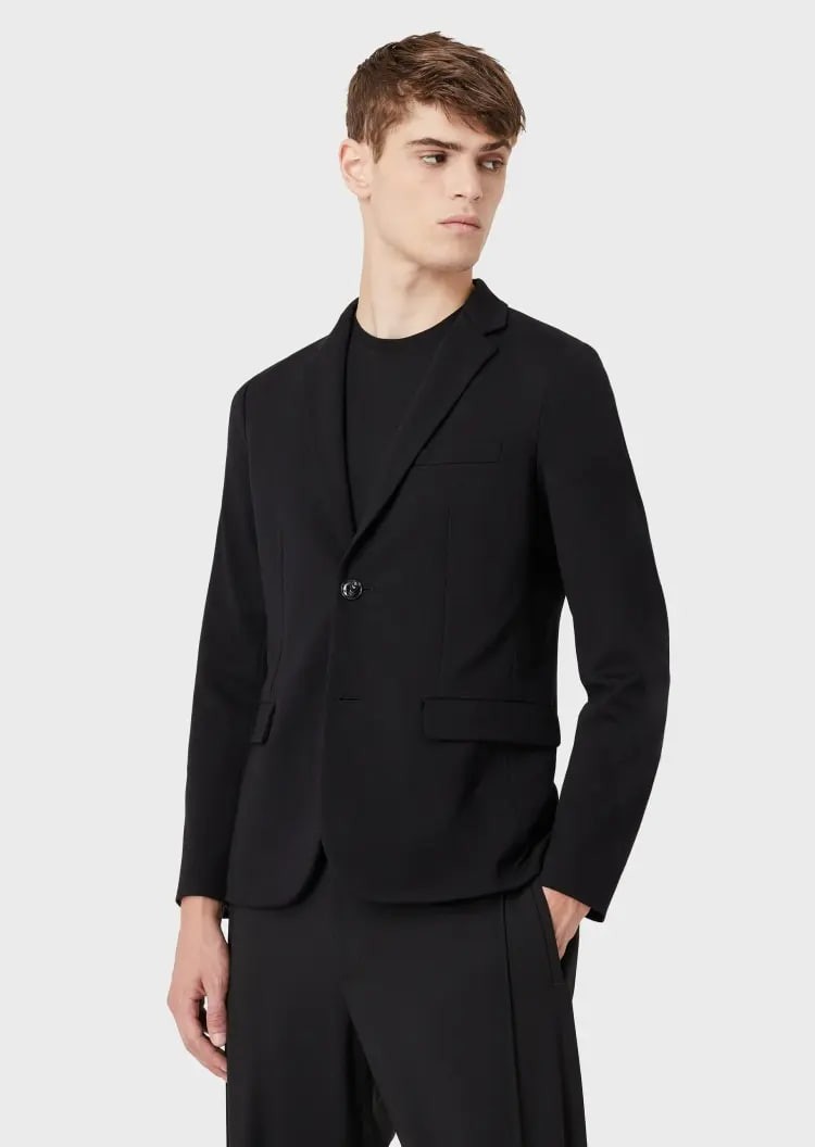 This EMPORIO ARMANI casual suit features a classic lapel, a slit at the back for easy movement, detailed flap side pockets, a chic two-button front, and a three-dimensional silhouette for a stylish and comfortable fit.