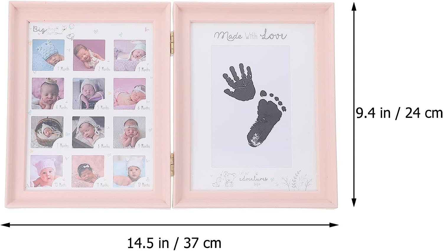 OUNONA Baby Frame, Photo Frame, Commemorative Photo, Growth Record, Baby Shower, Handprint, Footprint, Gift, 12 Month Photo Frame, Memorial, Baby Keepsake, Gift, 37X 24X1.4 CM