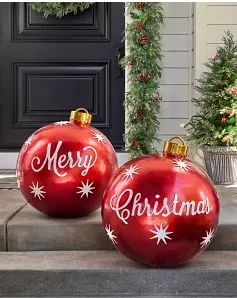 Delight guests of all ages with these oversized Christmas ornaments. Durable yet lightweight, this set adds a fun and festive look to your outdoors for holidays to come.