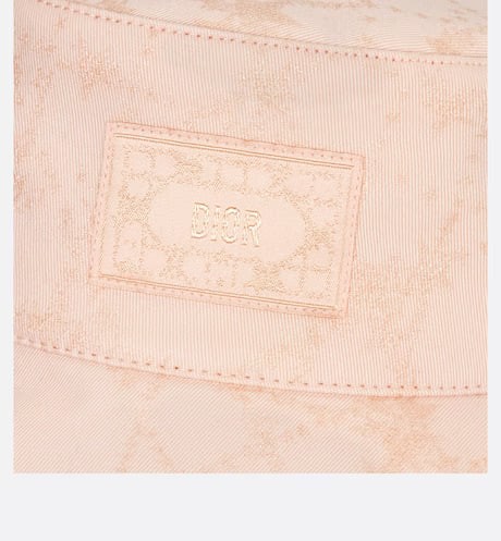 It is made of peach cotton oblique waterproof cloth with full print, and the front is marked with Cannage rattan case logo, with light gold Dior thorns.