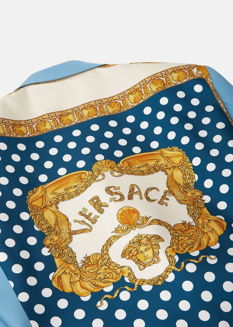 Single-breasted wool blazer with a silk Seashell Baroque Polka Dot print inlay on the back.