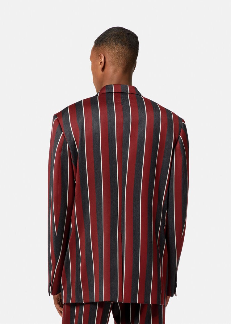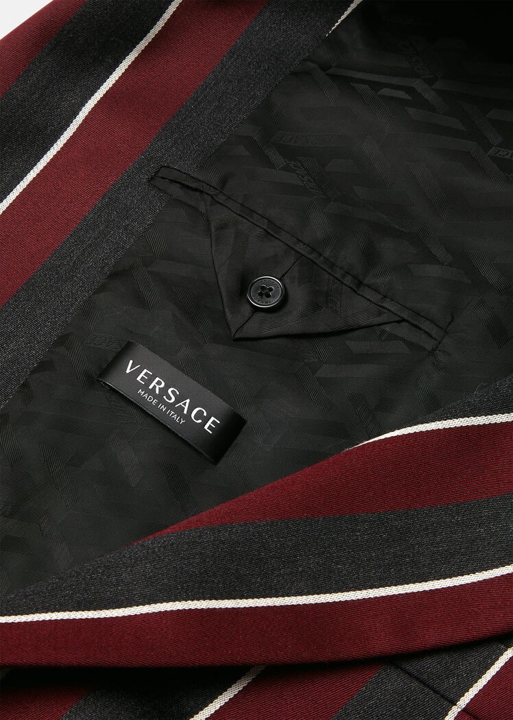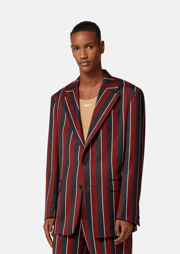 Fully lined, this single-breasted wool blazer features Regimental Stripes and a notch collar.