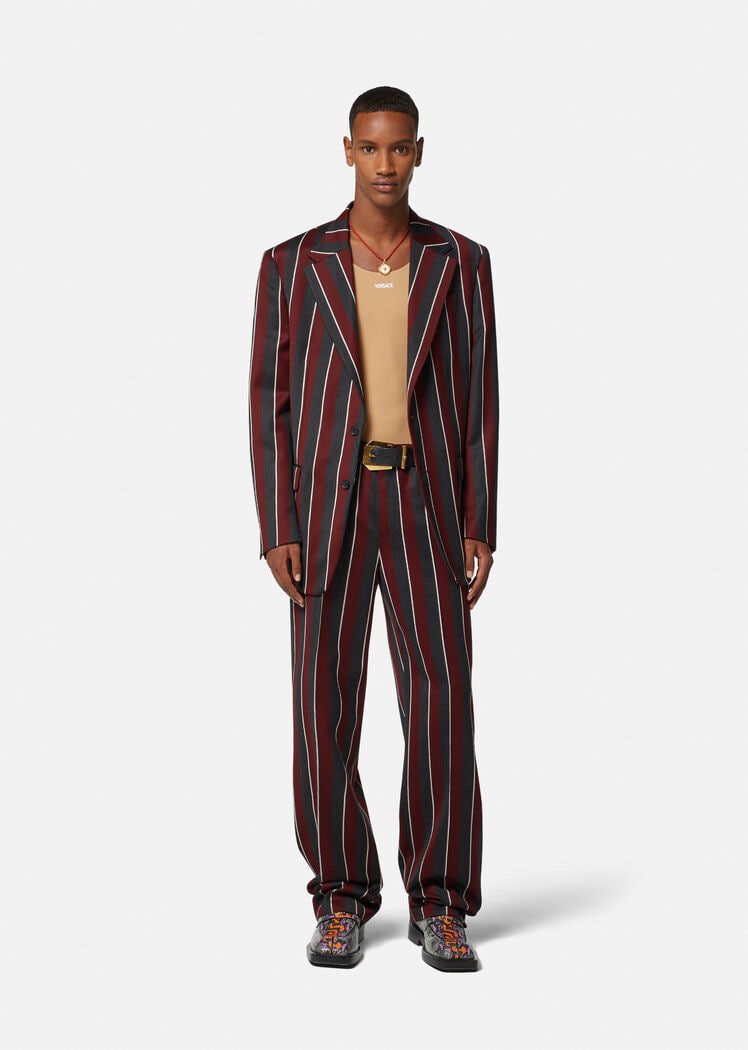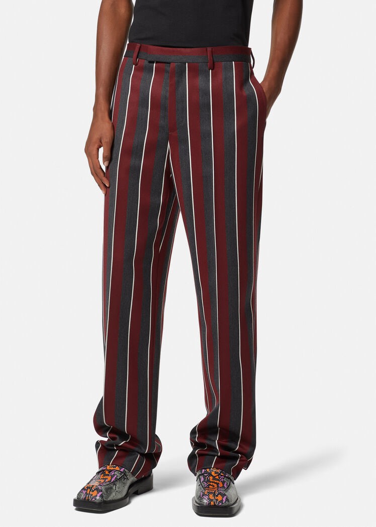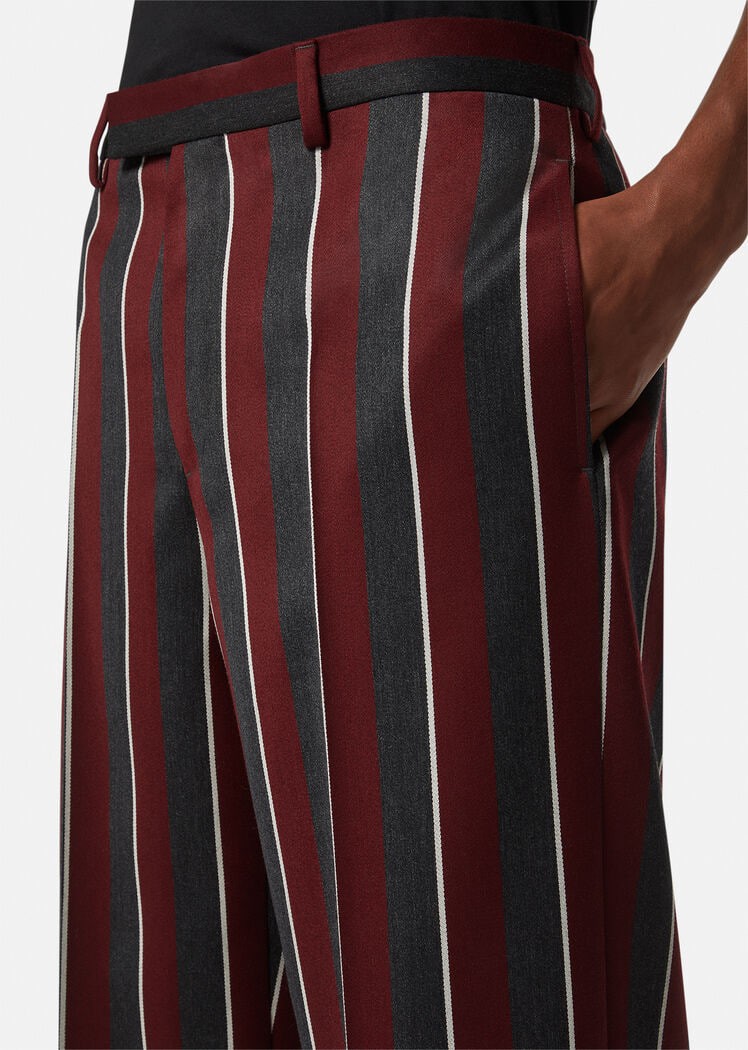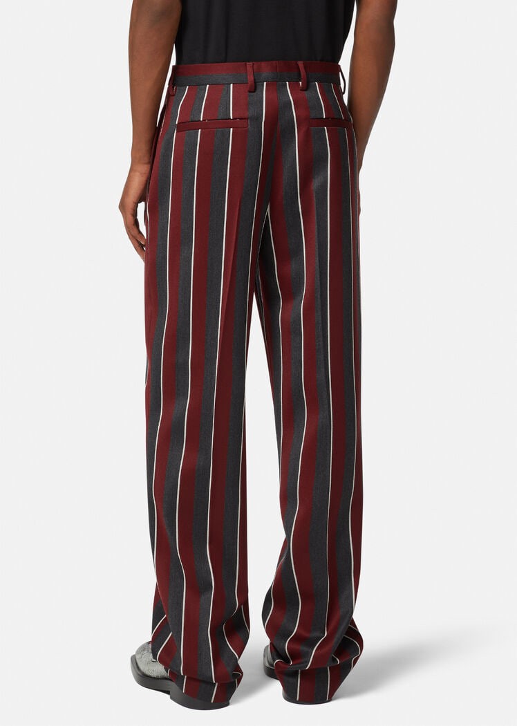 Made from virgin wool, these trousers have a fluid wide-leg fit and feature Regimental Stripes throughout. They have hidden hook and zip closures for a clean fit.