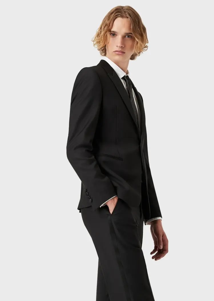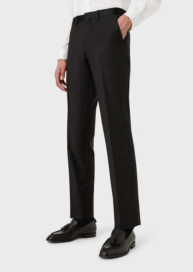 This EMPORIO ARMANI trousers is made of crisp and stylish worsted wool fabric, and the three-dimensional tailoring design ensures the wearing comfort while showing the temperament. It is an indispensable and practical item in the daily urban style wardrobe. It is suitable for various occasions and creates different handsome looks. Part of the Essentials selection from the Emporio Armani Capsule collection, this timeless style embodies: an ongoing collection with clean, well-crafted silhouettes that will fit any wardrobe in any season.